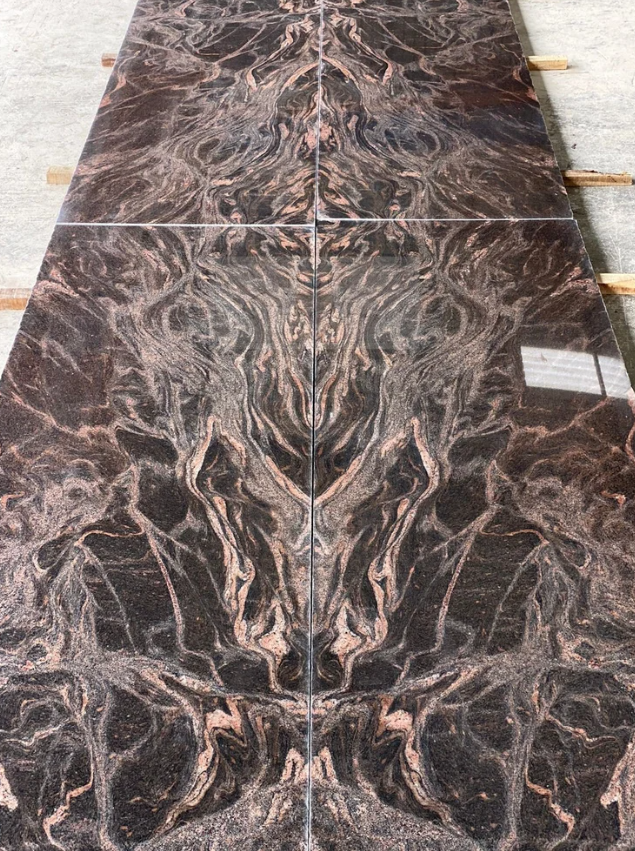 Dalles de granit bleu de l'Himalaya très demandées, veines orange-grises exotiques, surface polie, design moderne pour comptoir, garantie à vie