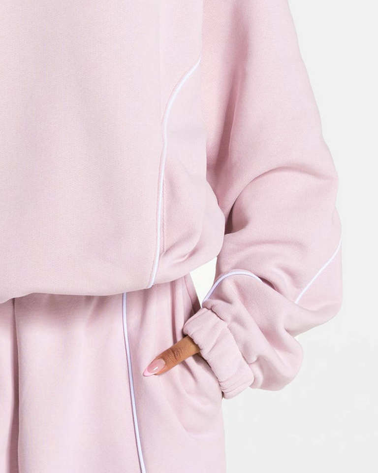 Survêtement rose clair à forte demande avec passepoil Survêtements deux pièces pour femmes Vêtements de sport respirants pour femmes