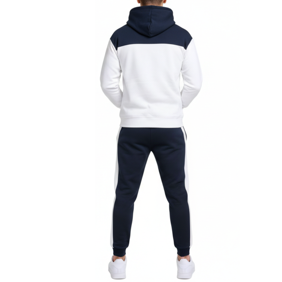 Ensemble de survêtement d'hiver pour homme très demandé, ensemble deux pièces (hoodie et pantalon) bleu marine et blanc uni, tenue de sport athlétique