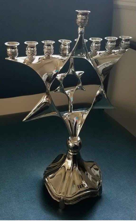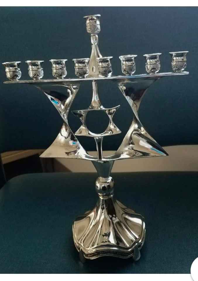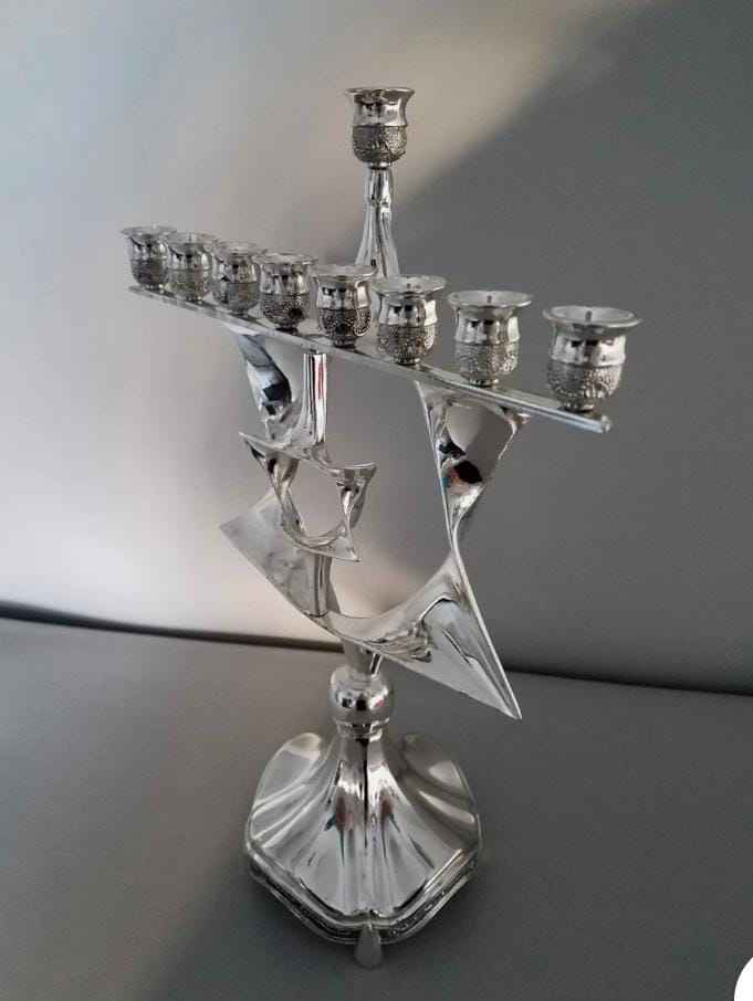 Haute demande, nouveau design, fait main, en satin uni brillant, Menorah à 9 bras, Porte-bougie, Meilleurs chandeliers métalliques pour Hanoucca, Pots à bougies