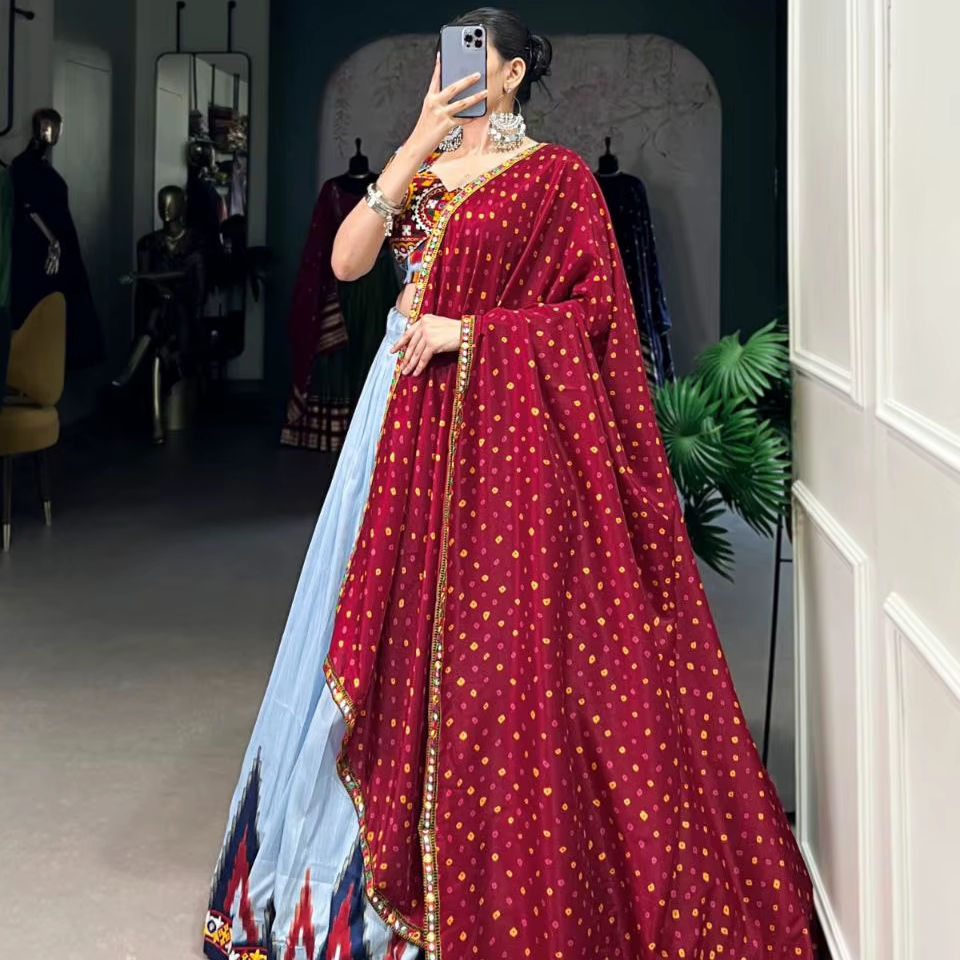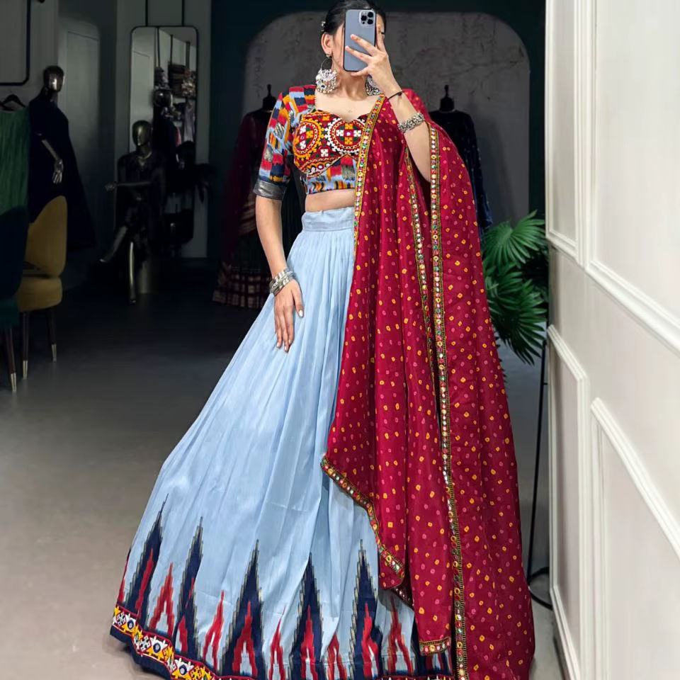 Printing Methods:Foil Work And Mirror Gamthi Lace Border