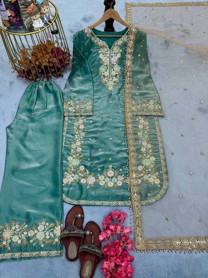 PLAZZO WORK:With Heavy Embroidery 5 mm Sequence Work *Plazzo Length*:40-41 Inc