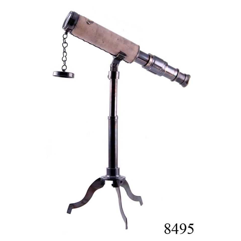 Télescope nautique en laiton-bois debout au sol antique très exigeant pour télescope professionnel avec trépied à vendre