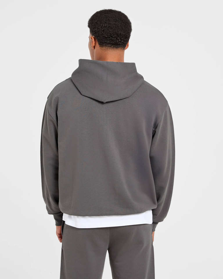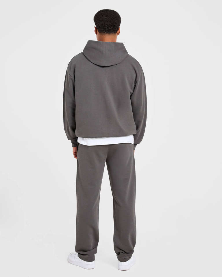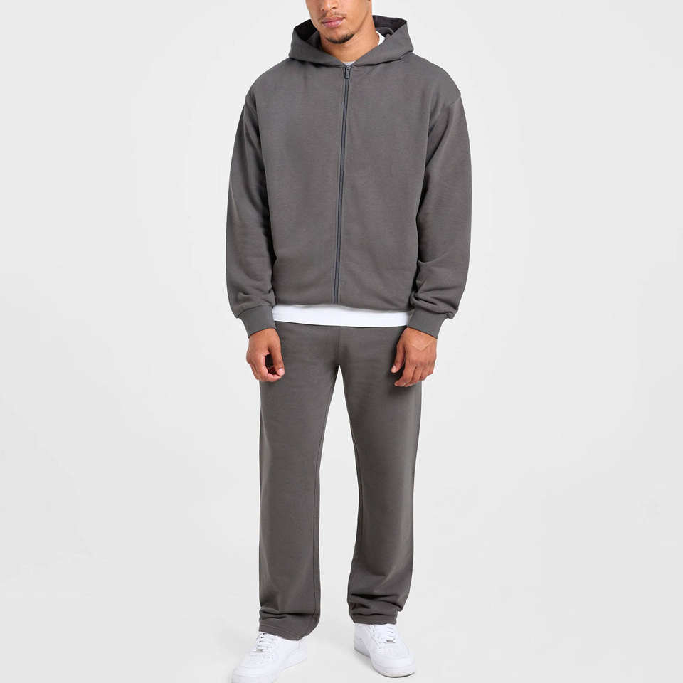 Survêtement décontracté surdimensionné à capuche en coton épais pour homme avec pantalon de jogging, couleur anthracite personnalisée