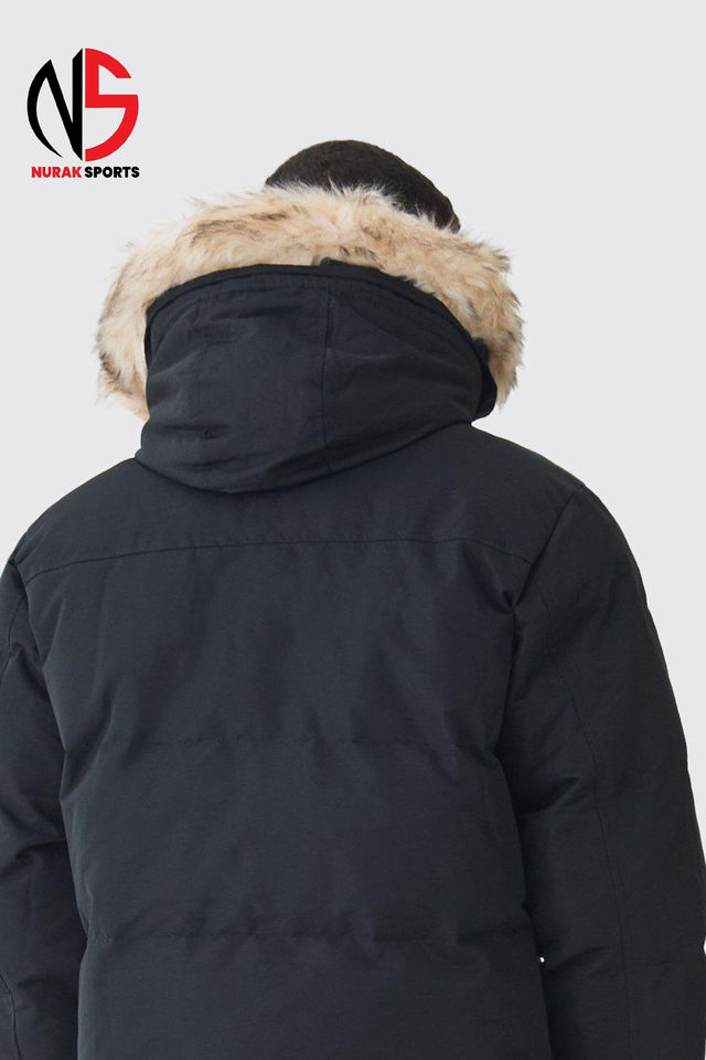 Blouson matelassé à capuche très demandé avec bordure en fausse fourrure amovible, noir, coupe-vent, chaud, pour homme, hiver, poches latérales 2026
