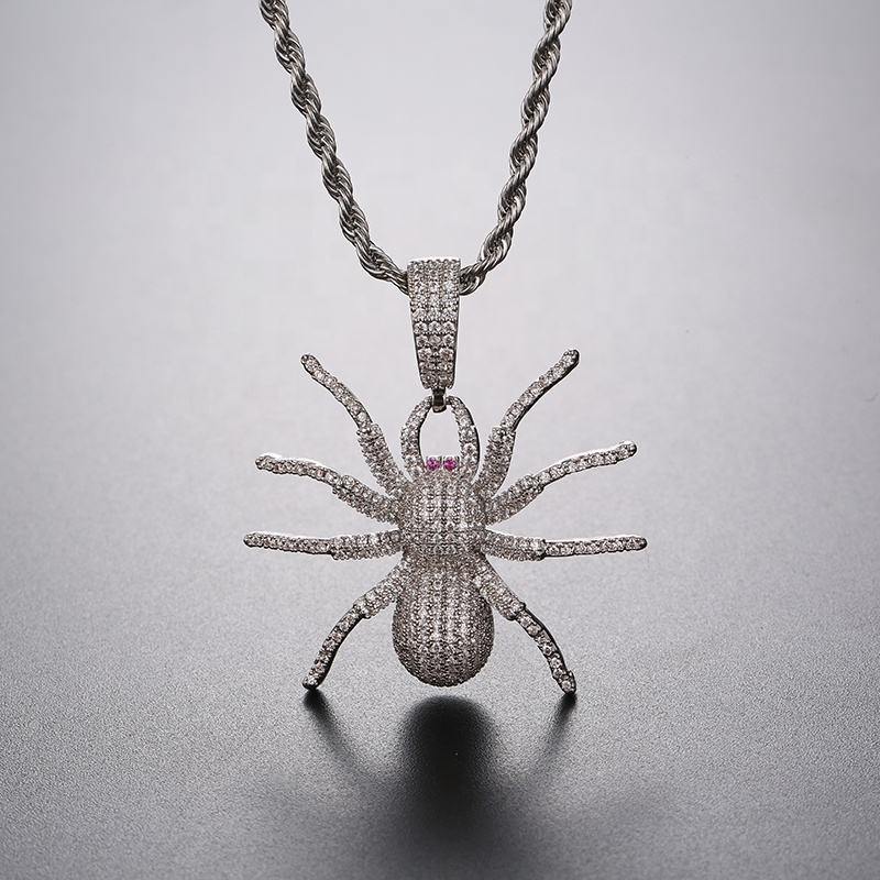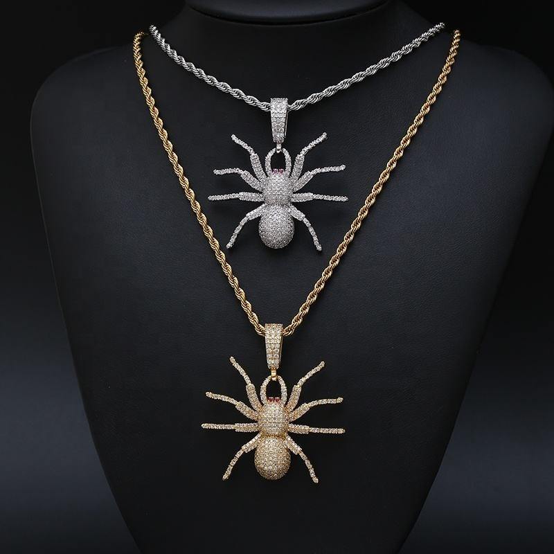 Pendentif personnalisé très demandé, entièrement serti de moissanite, motif araignée, passe le test du diamant, bijoux hip-hop