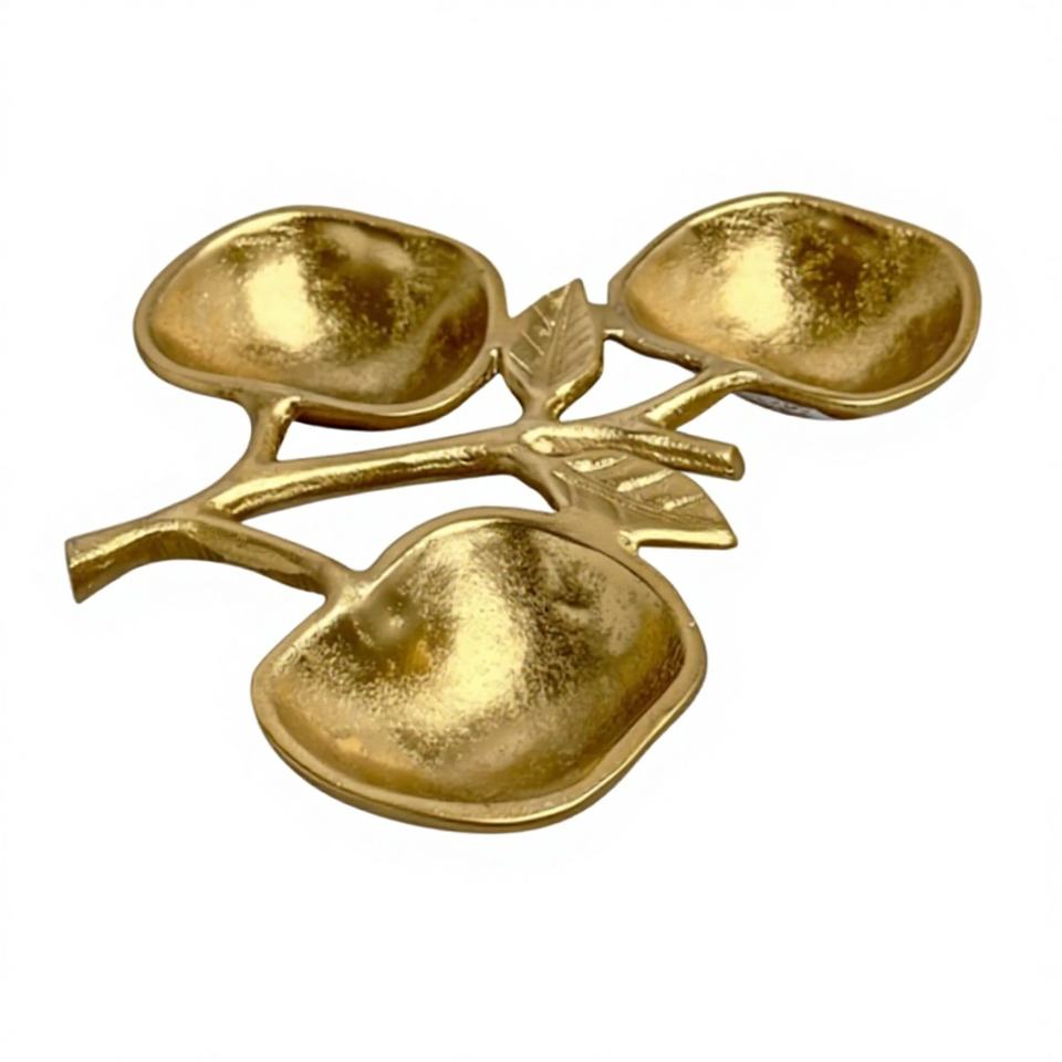 Décoration d'intérieur personnalisée spéciale Ramadan : Bol à 3 branches en laiton texturé moderne, motif pomme, avec éléments en métal argenté mobiles, artisanat