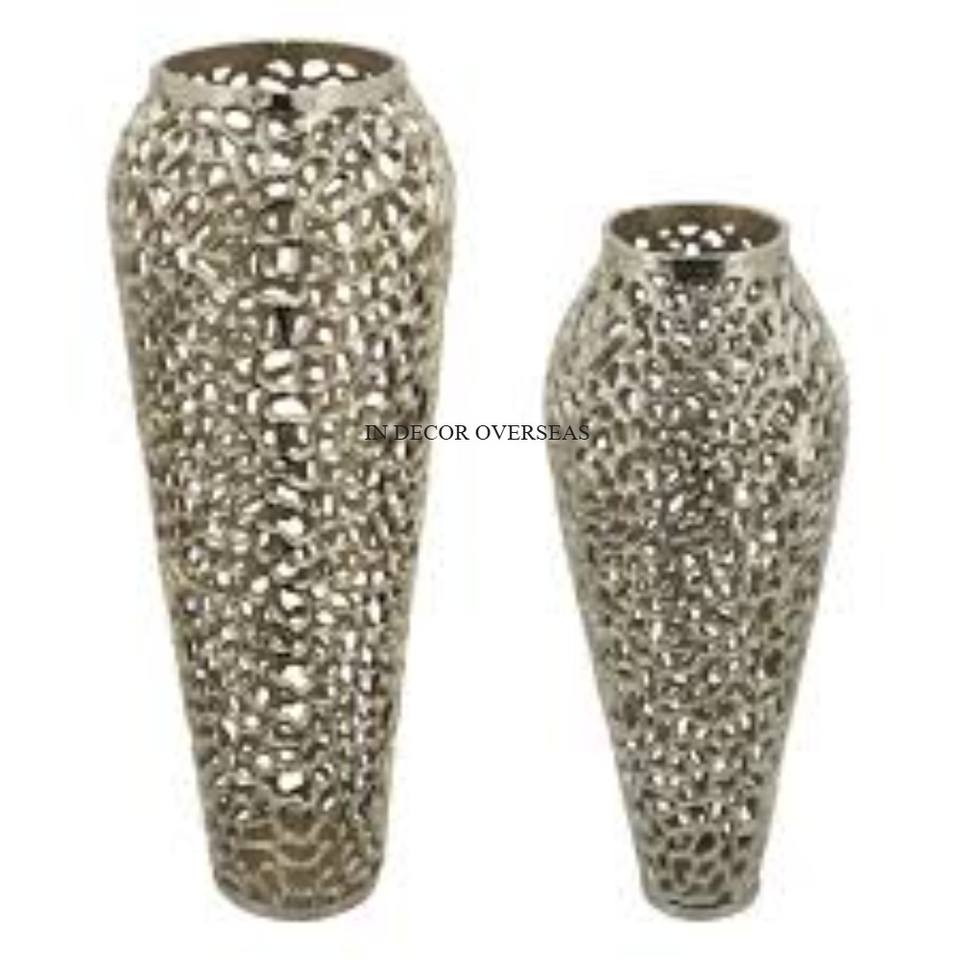 Haute exigence couleur argent finition brillant poli aluminium coulé Antique fantaisie Designer maison intérieur fleur Vase fournitures