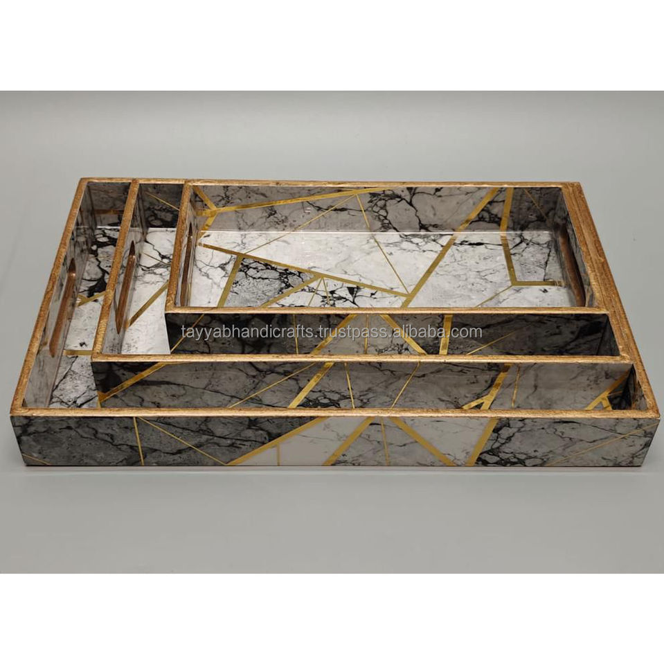 Plateau en bois très exigeant fabriqué à la main ensemble de plateau de service de nourriture imprimé moderne plateau de service en bois de bambou
