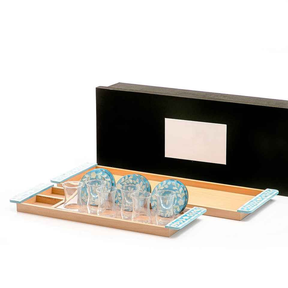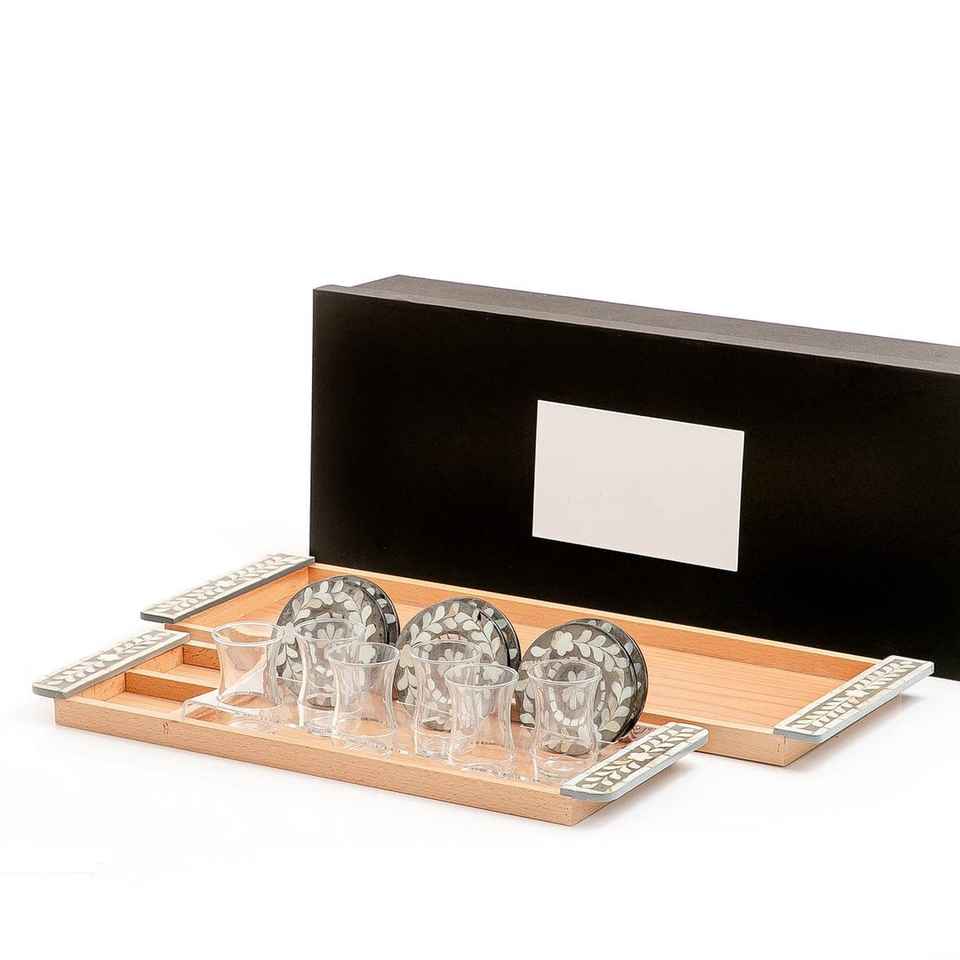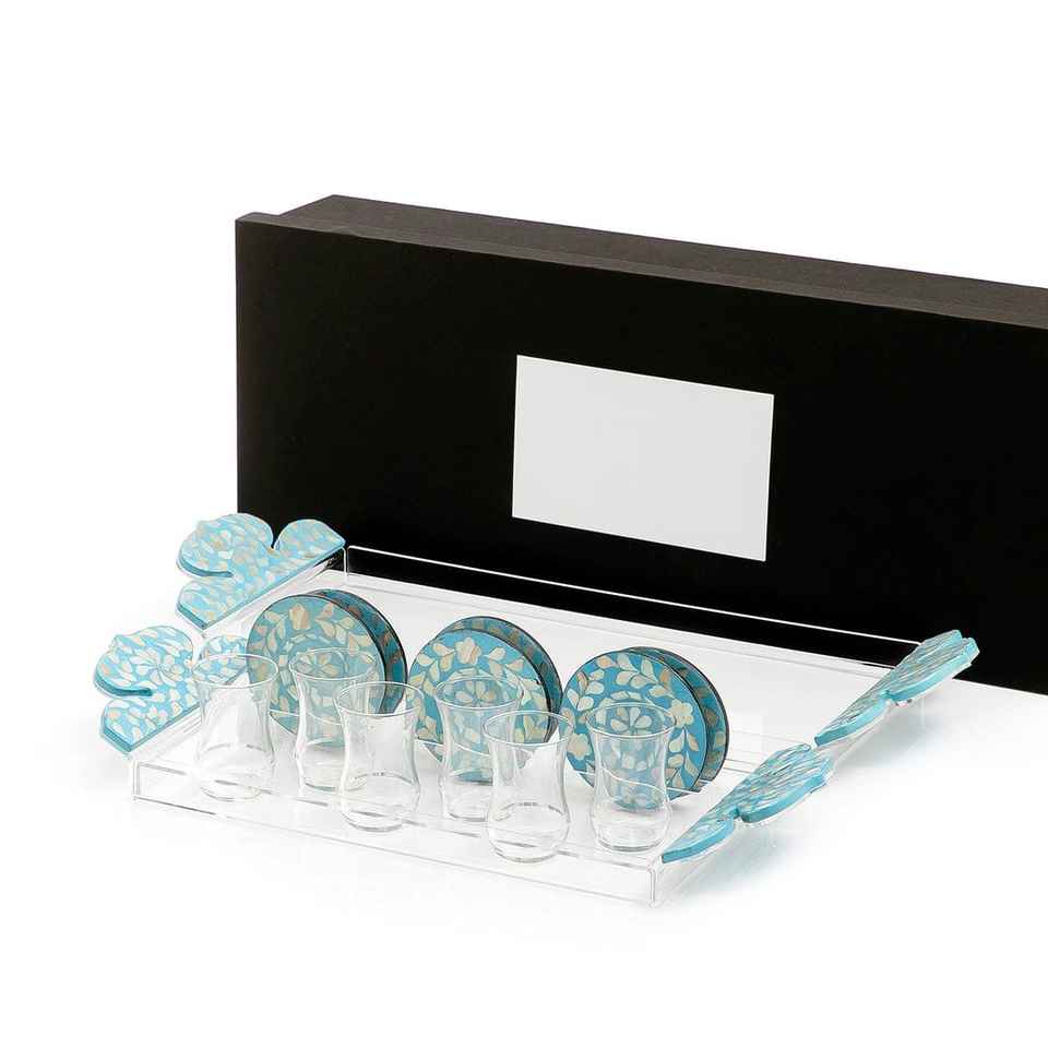 Plateau de service rectangulaire en verre incrusté de nacre, très demandé, avec assiettes à thé, écologique, compatible lave-vaisselle, pour la maison