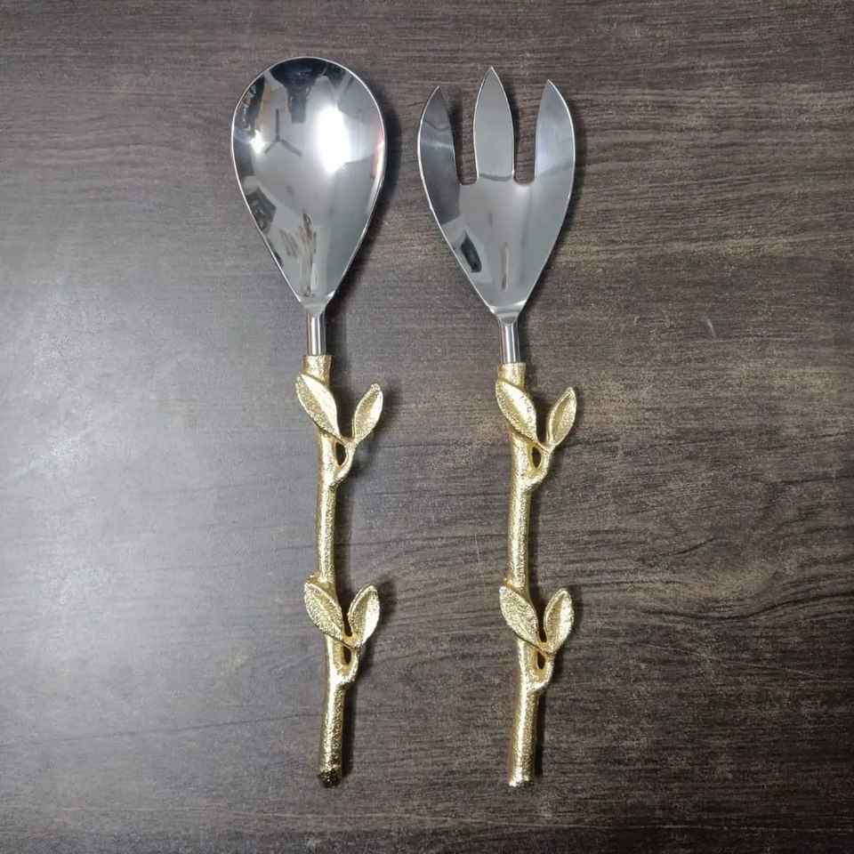 Ensemble de Cuillères à Salade Haut de Gamme en Acier Inoxydable Écologique, Poli, Design Élégant, Compatible Lave-Vaisselle