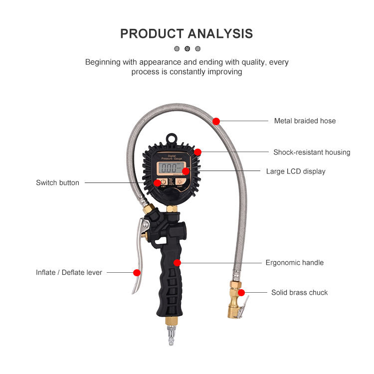 Jauge de pneu numérique avec gonfleur, Digital à haute densité Tir