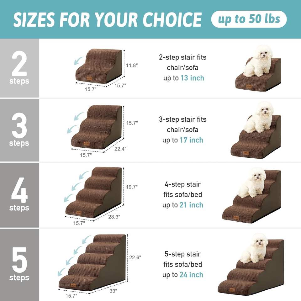 Rampe d'escaliers pour animaux de compagnie en 5 étapes pour canapé, étapes de chien en mousse