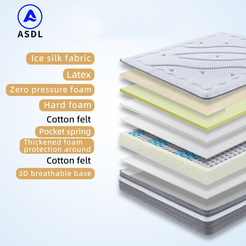 Matelas en mousse haute densité en boîte, matelas à ressorts ensachés 5 zones, tailles King, Queen, Simple, Double