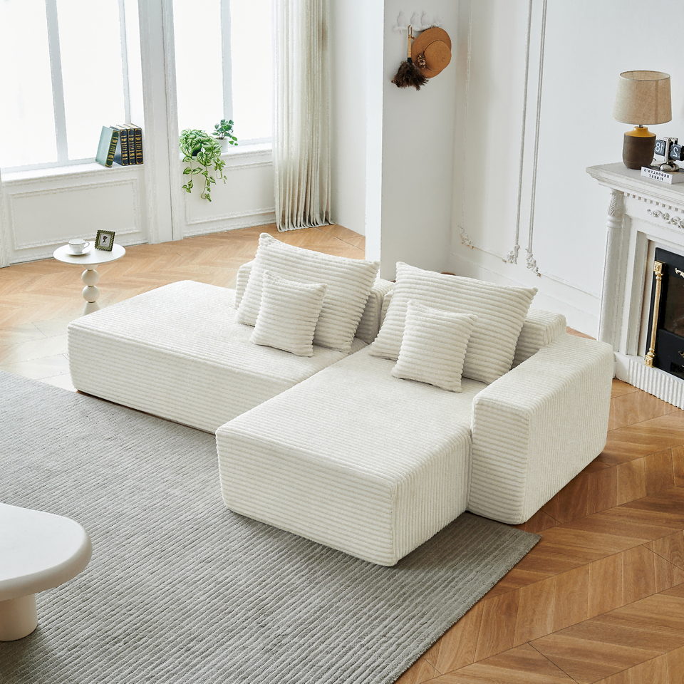 Canapé modulaire en forme de L haute densité pour appartement et villa, design moderne, tissu durable, design sans accoudoirs, dossier rembourré