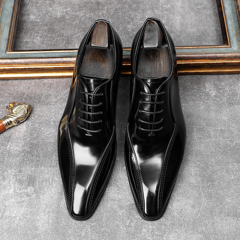 Chaussures de ville pour hommes en cuir haute densité à enfiler, à bout pointu, avec revêtement anti-rayures, maille respirante, soutien de la voûte plantaire et imperméables