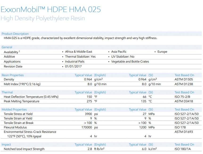 Numéro de Type:HDPE HMA 025