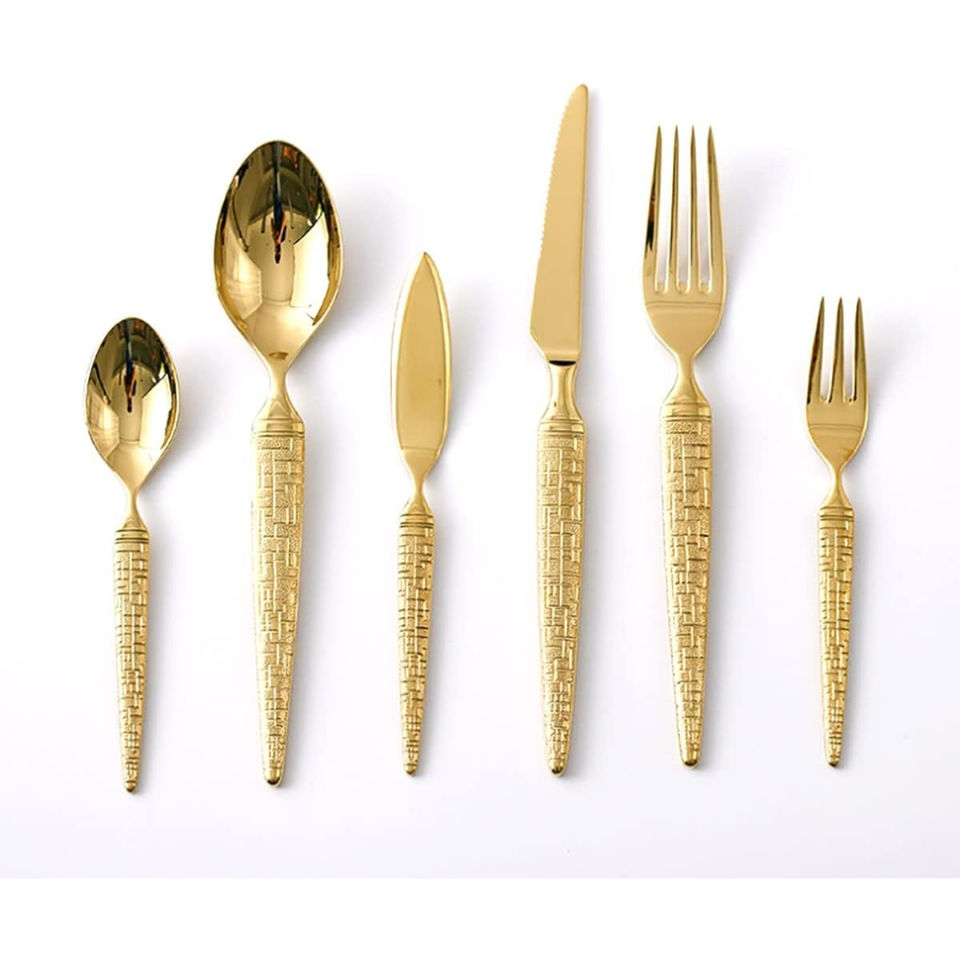 Prix d'usine de haute qualité Couverts pour fêtes de mariage Ensemble de couverts en acier inoxydable plaqué or pour fêtes
