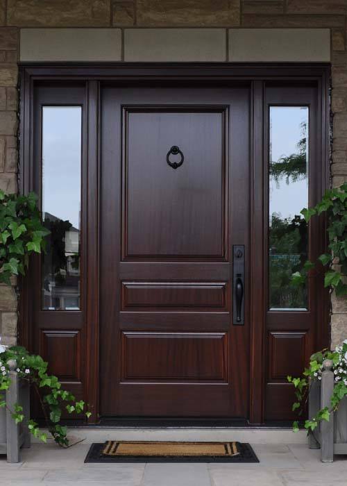 Porte d'entrée en bois massif de teck et chêne de qualité supérieure, à ouverture latérale, minimaliste, pour villa, avec isolation acoustique et surface finie haute durabilité, pour usage extérieur.