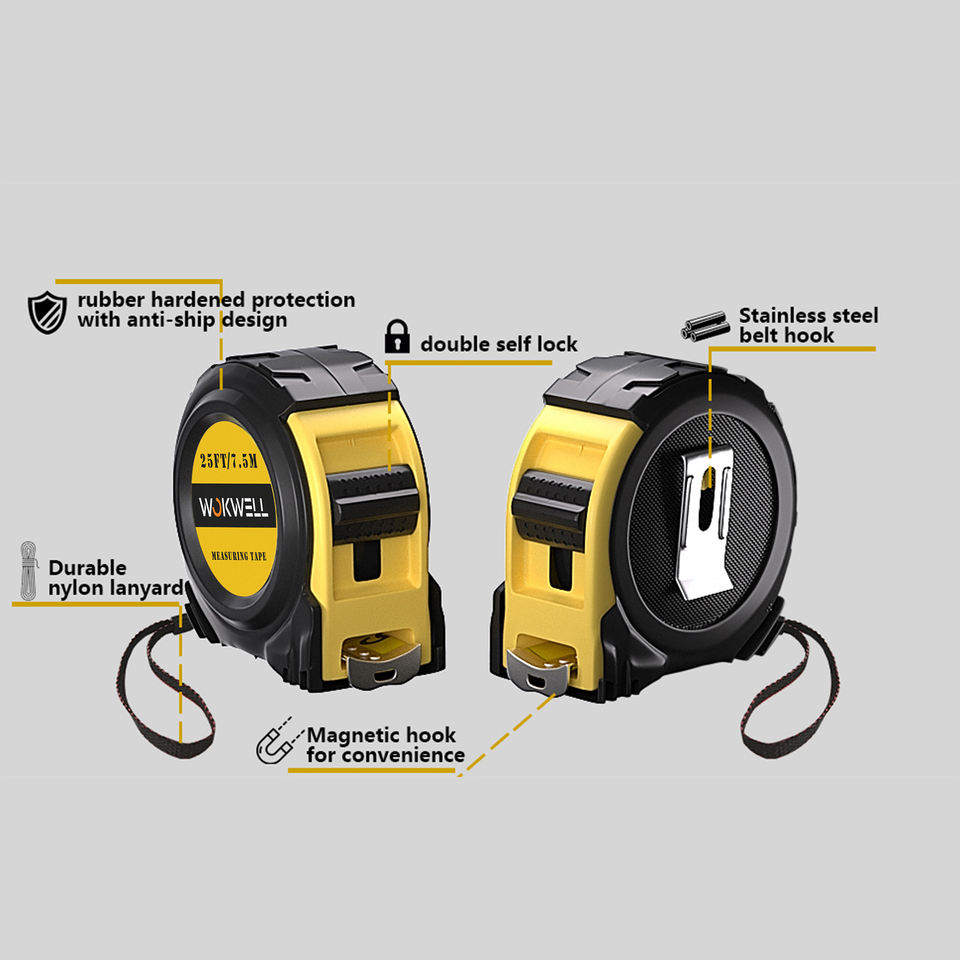 Haute durabilité lame en acier inoxydable retour automatique serrure à glissière ruban à mesurer en plastique haute visibilité boîtier mesure métrique