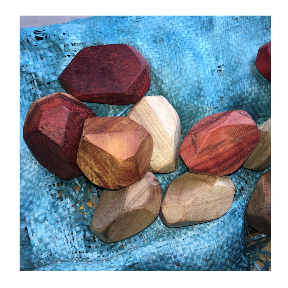 High-Durability Tumi Ishi Wooden Rock Blocks That Encourage Children to Experiment with Shapes and Stacking