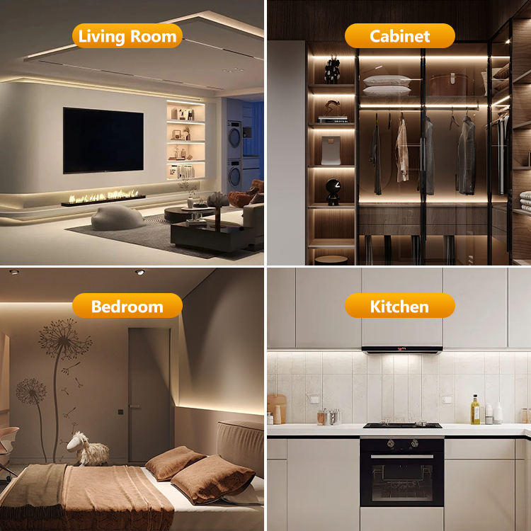 Bande lumineuse LED à haute efficacité lumineuse 128LED 24V SMD 2835 pour armoire, plafond, maison