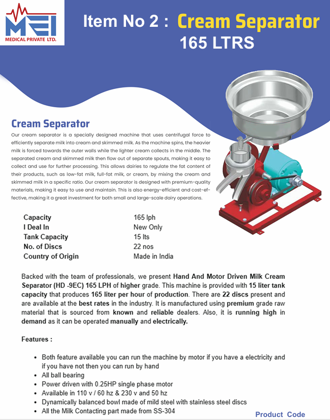 Nom du produit:Séparateur crème 165 LPH