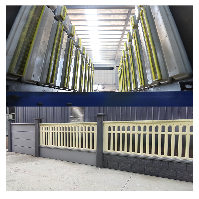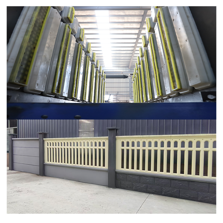 Ligne de formage automatique de clôtures creuses à haute efficacité avec PLC, durcissement rapide, empilage, machine à clôtures creuses préfabriquées à faible coût