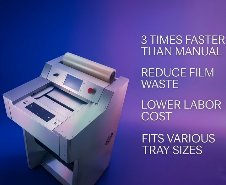 Machine d'emballage automatique haute performance pour film PVC, idéale pour l'emballage de barquettes de supermarché (viande, champignons, fruits, légumes)