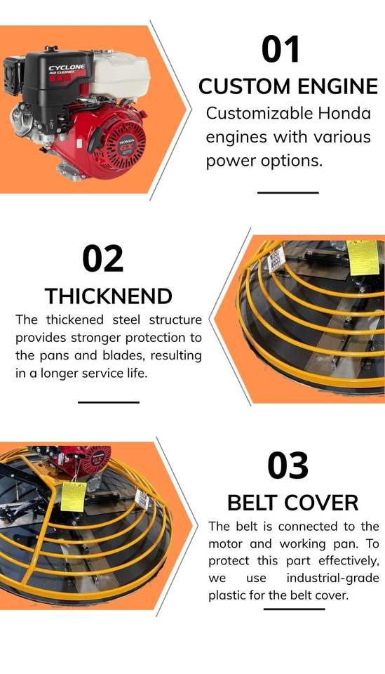 Fraiseuse à béton à commande manuelle à moteur Honda haute efficacité 1000 mm 5,5 CV 60-135 tr/min Machine de finition de sol Vente chaude