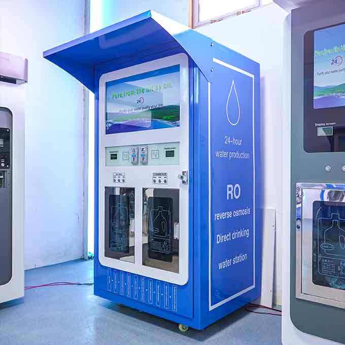 Distributeur d'eau à double sortie haute efficacité, kiosque pour deux personnes utilisant simultanément, station de remplissage rapide d'eau RO