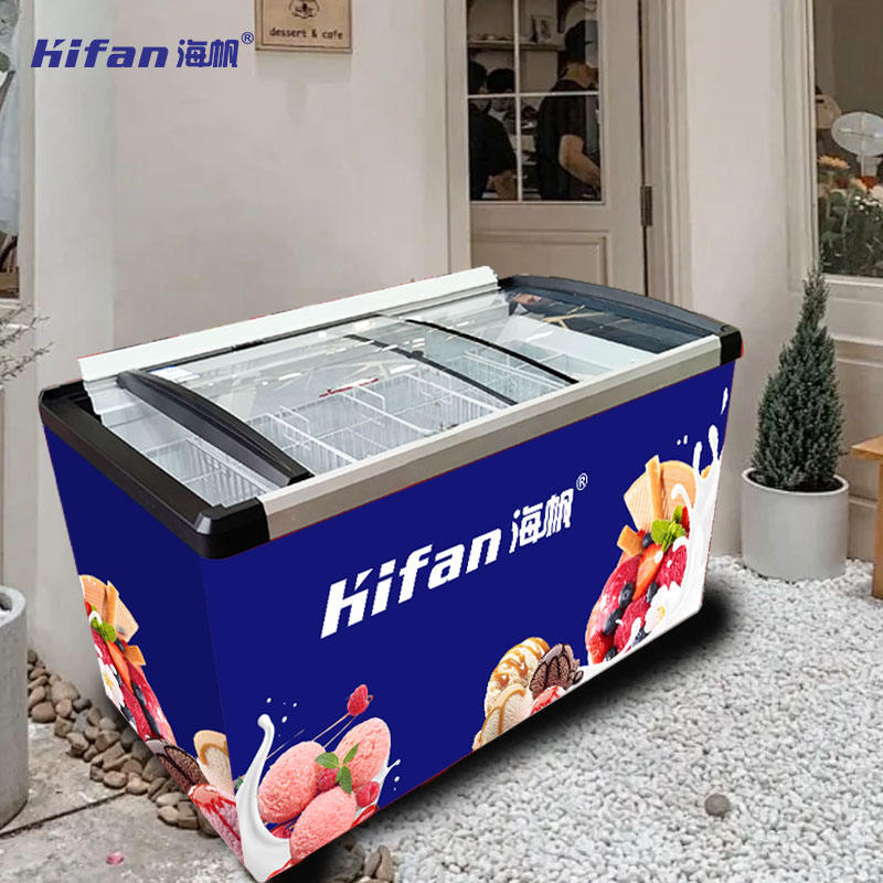 Réfrigérateur commercial en verre haute performance, combiné congélateur coffre, équipement de réfrigération pour le stockage d'aliments surgelés
