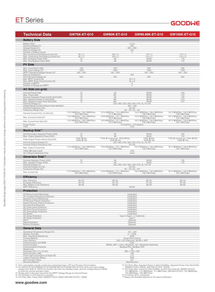 Convertisseur hybride haute tension triphasé GoodWe GW80K-ET-G10 à 8 MPPTs, 80 kW, haute efficacité
