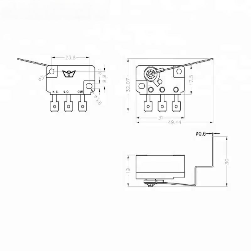 Type de texte:Micro-interrupteur à aiguille à trois broches
