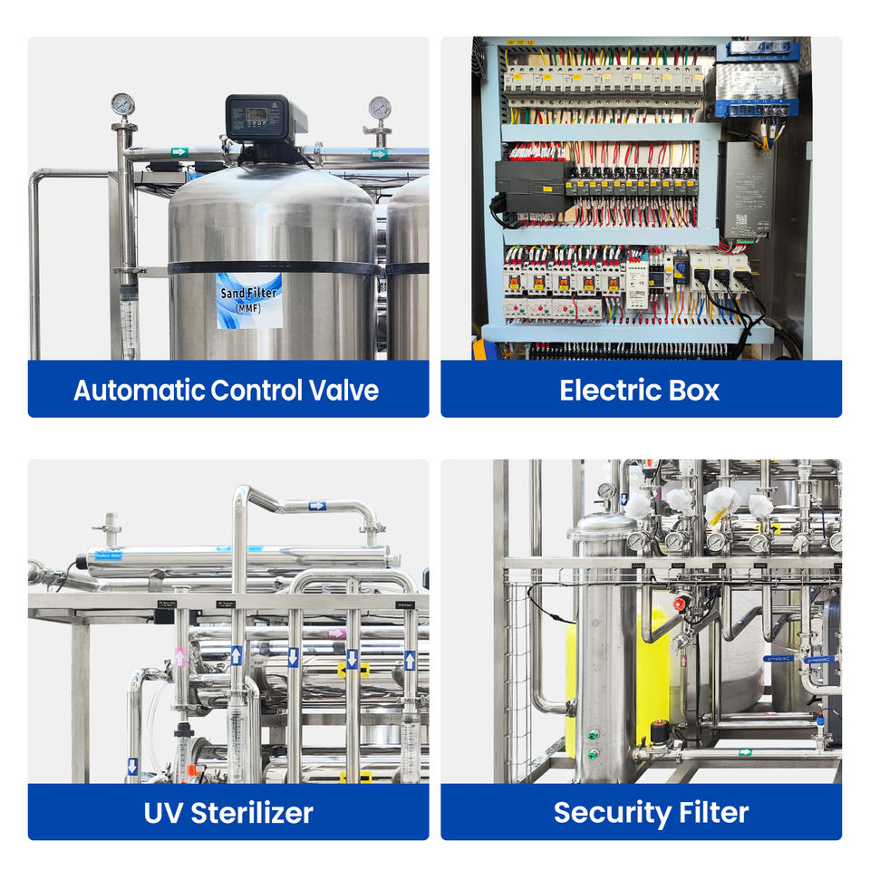 Équipement de traitement de l'eau Ultra-Pure à haute efficacité osmose inverse bipolaire + EDI avec noyau PLC de récipient à pression de pompe de 220V