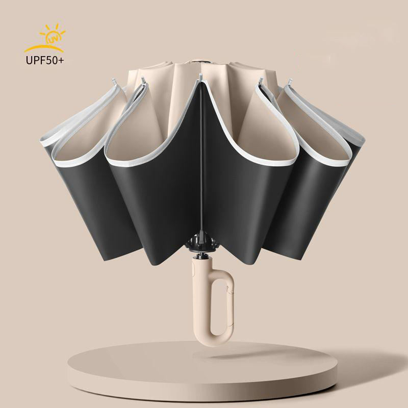 Haut de gamme 10 os anneau boucle automatique parapluie grande taille renforcé épaissi hommes femmes soleil pluie inverse cadeaux d'affaires
