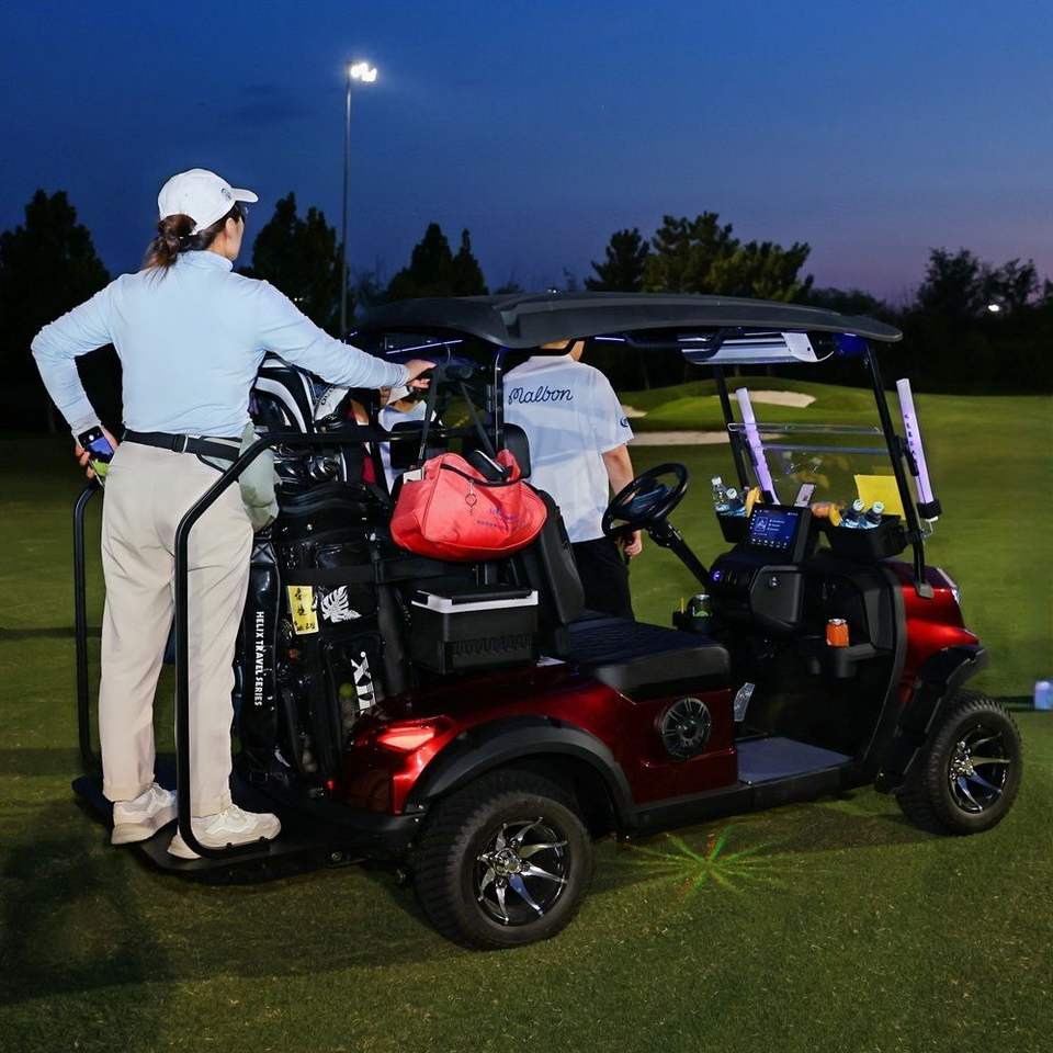 Chariots de Golf Électriques Biplaces Haut de Gamme avec Pneus de 12/14 Pouces, Tension de Batterie 48V, Personnalisation et Éclairage d'Ambiance