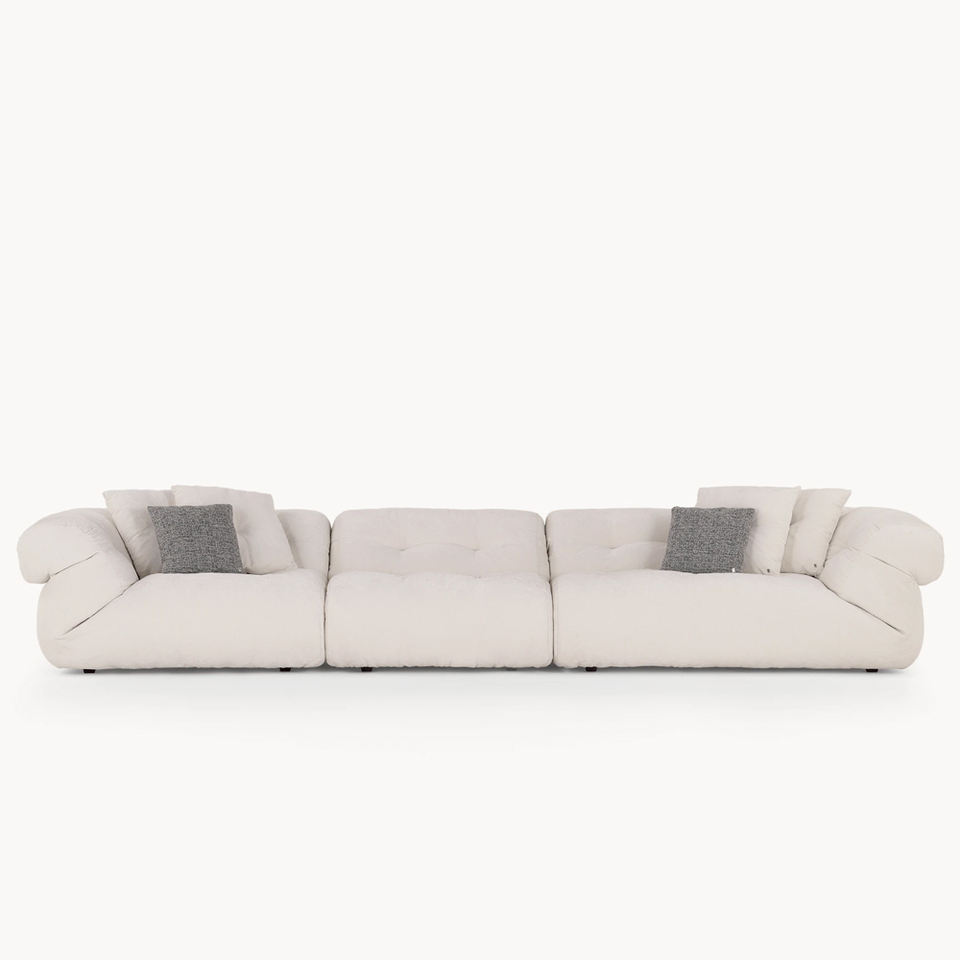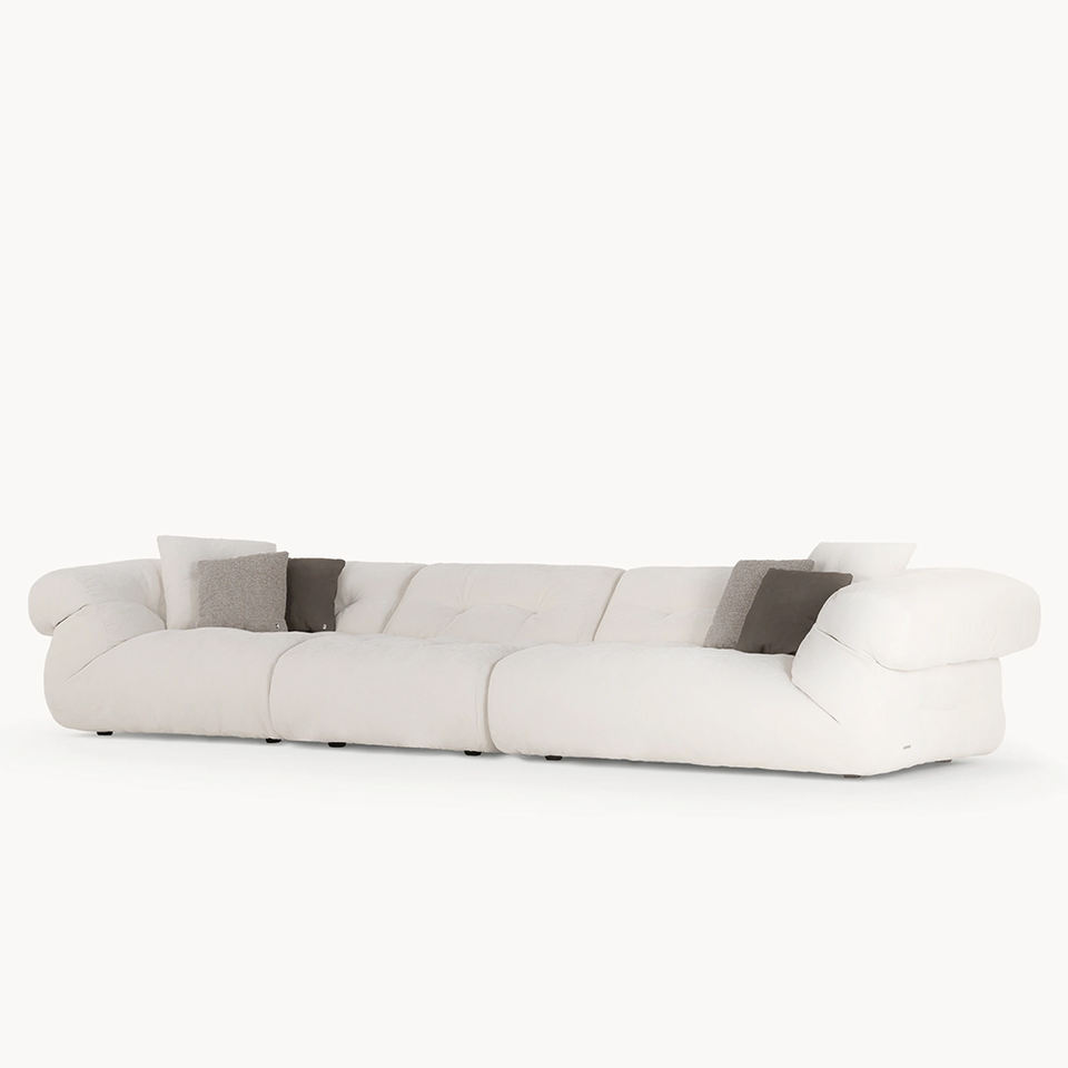 Canapé en tissu blanc haut de gamme 4 places, long, moderne, minimaliste, élégant, confortable et moelleux pour villa, maison, salon chaleureux