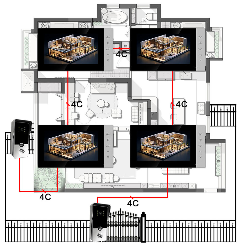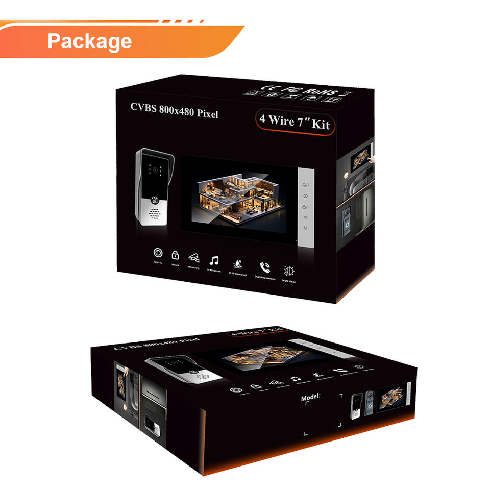 Kit de vidéophone haut de gamme 7 pouces 4 fils, sonnette extérieure étanche IP65 pour villa