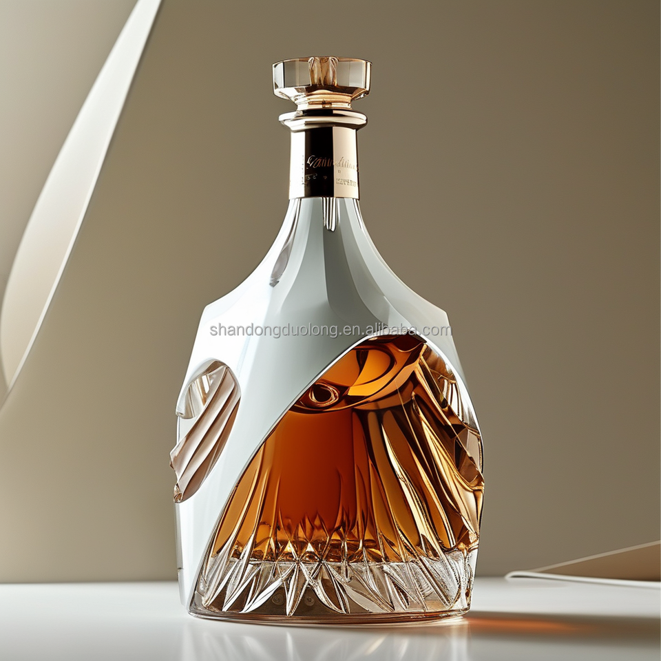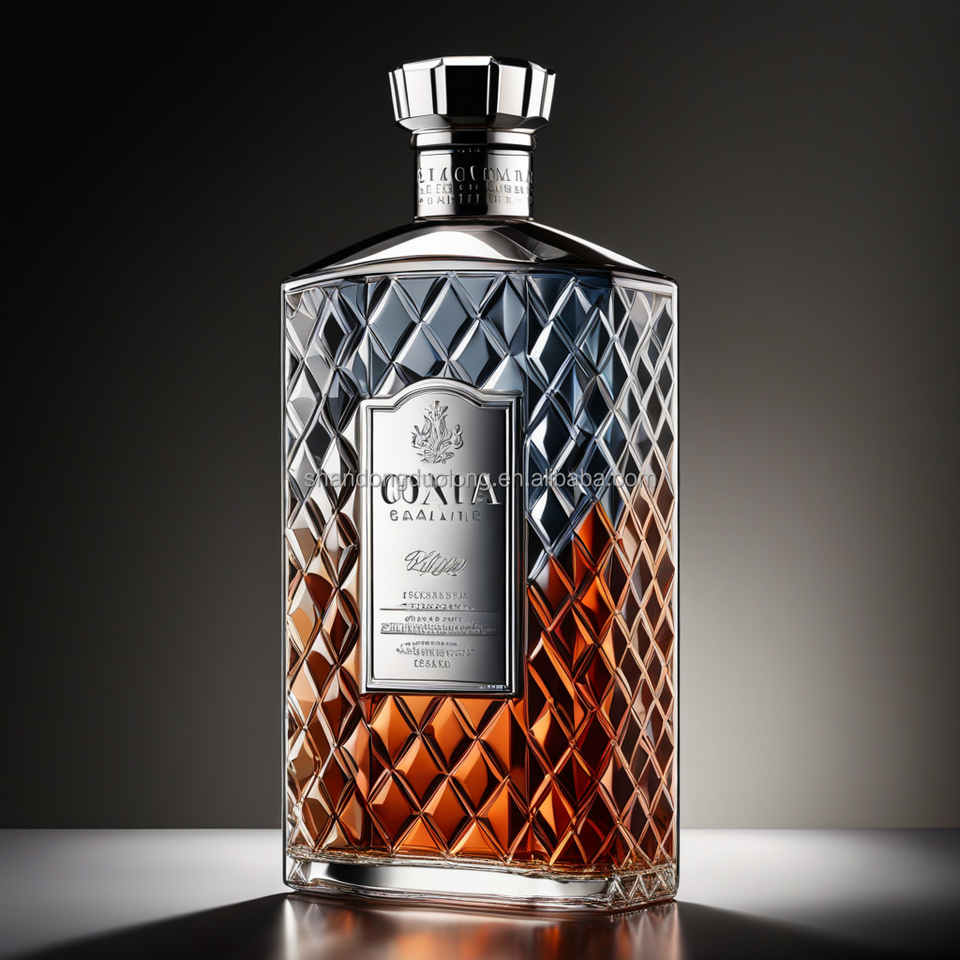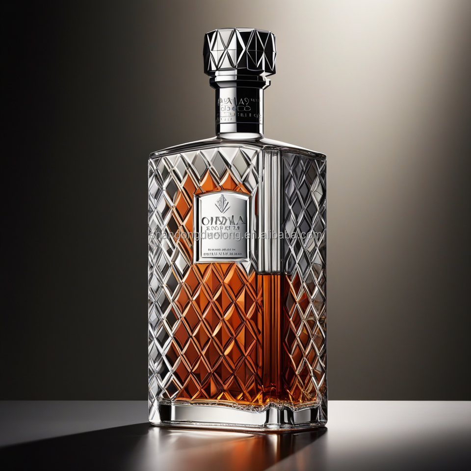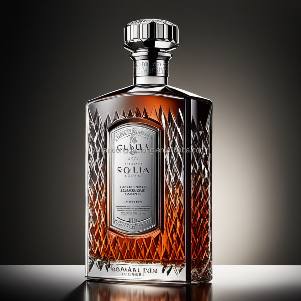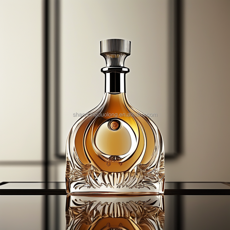 Bouteilles en verre plat en relief haut de gamme 700ml/750ml forme unique pour bouteilles vides de vodka whisky gin et liqueur avec bouchons