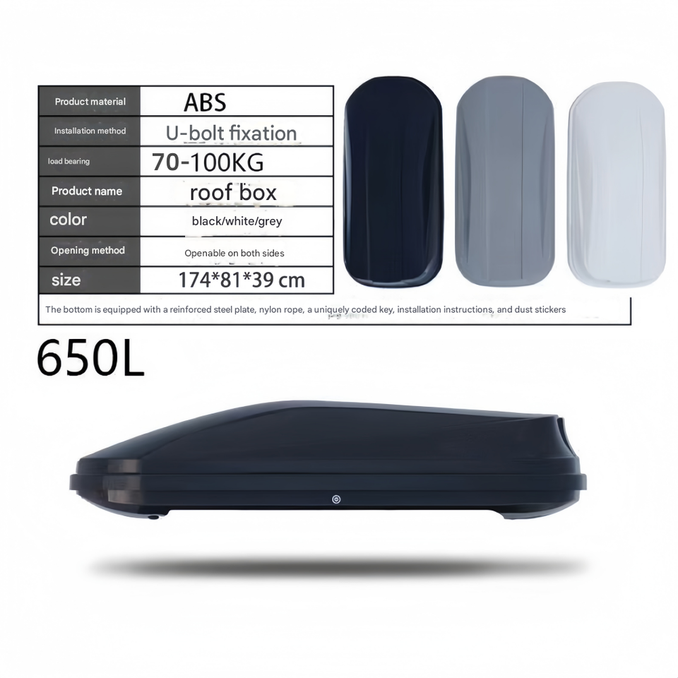 Boîte de toit de voiture de haute qualité en ABS, à ouverture double latérale, à dégagement rapide, grande capacité de charge, 650L
