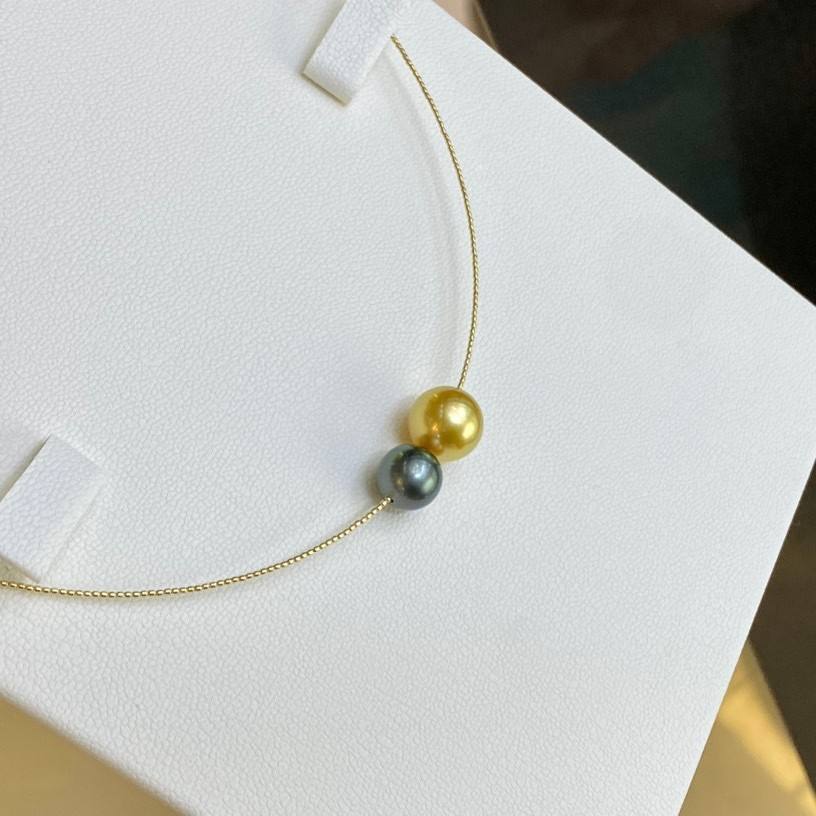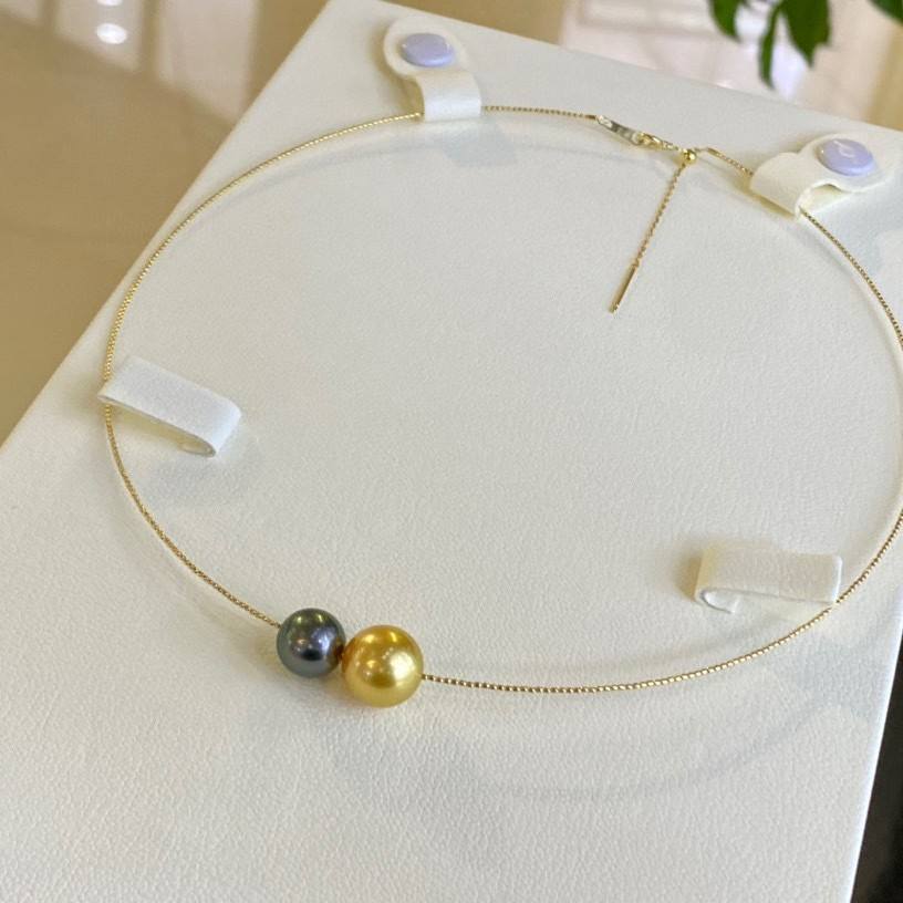 Collier de perles d'or réglable haut de gamme avec collier en or 18 carats importé, perle noire de Tahiti en eau de mer, perle de Nanyang, cadeau de luxe