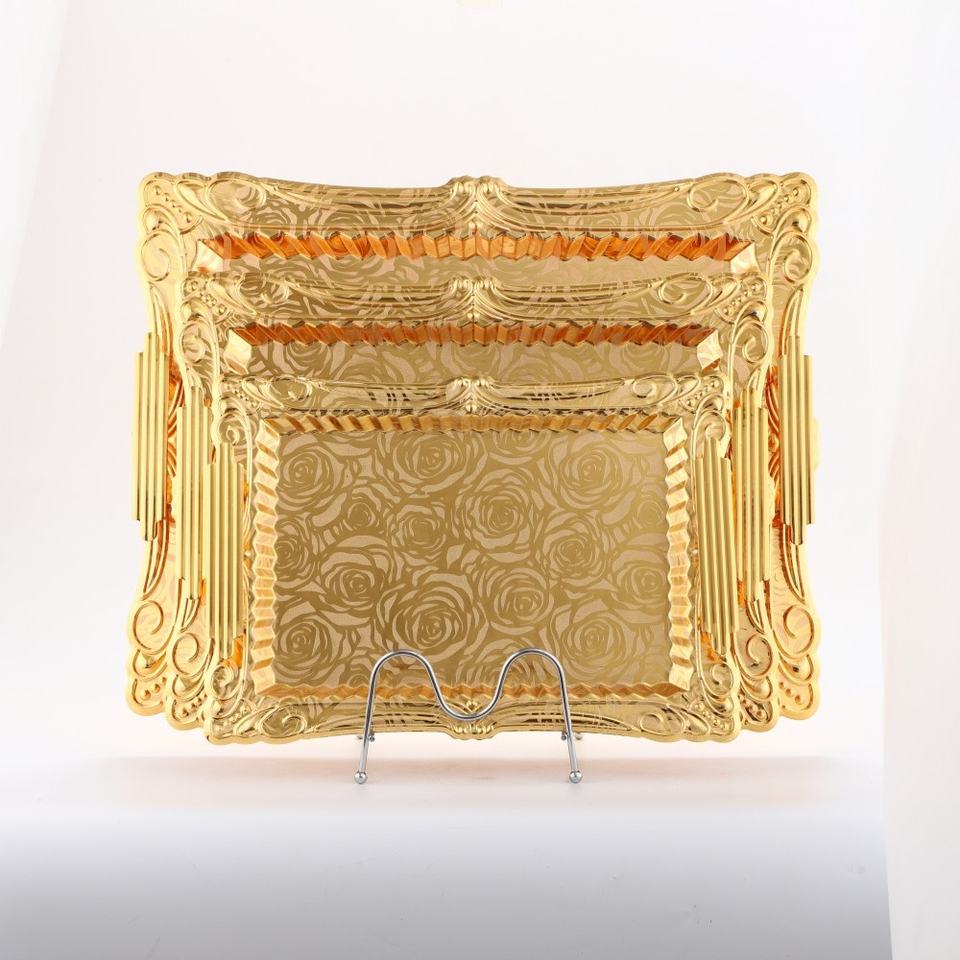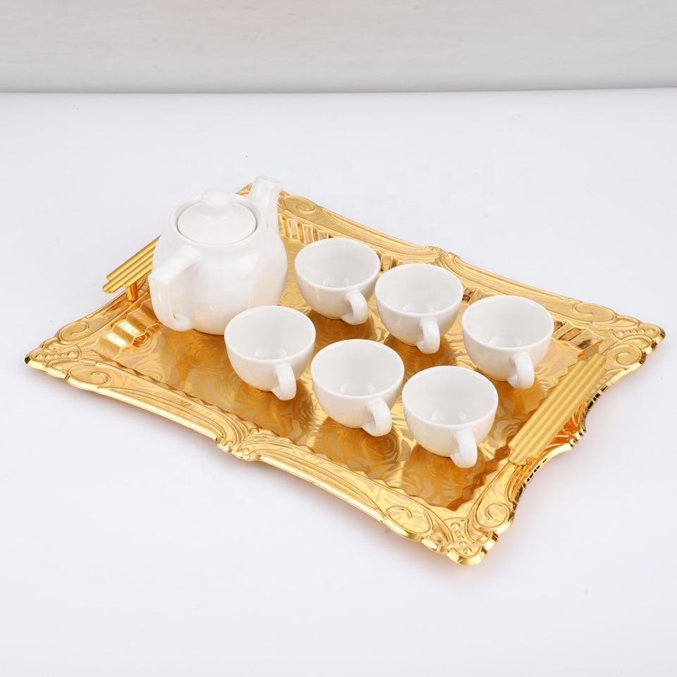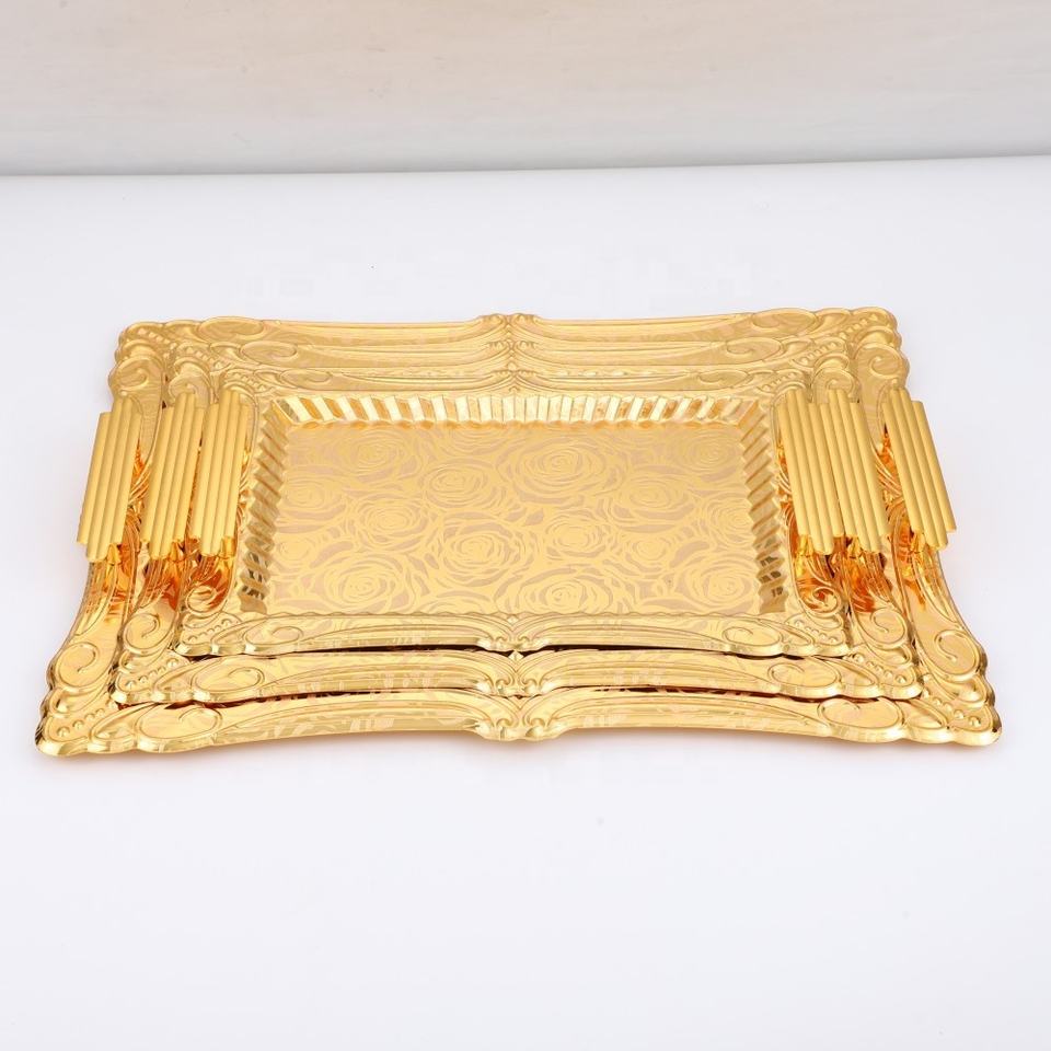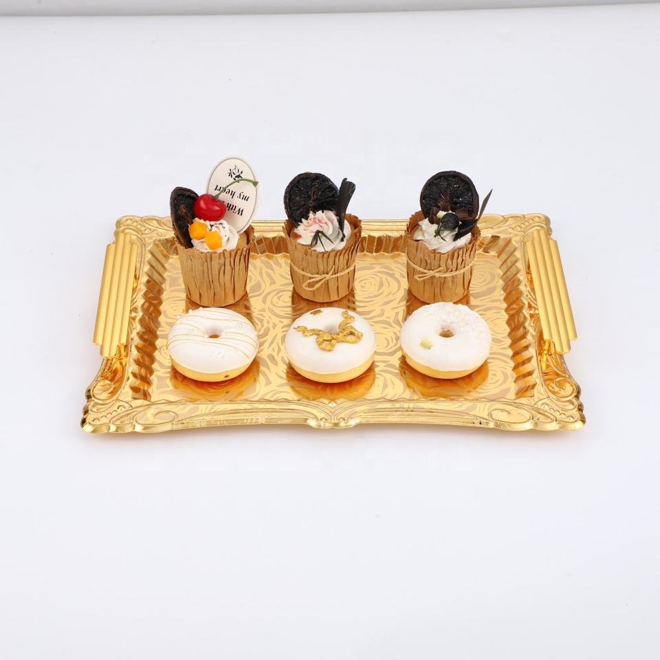 Plateau de service doré arabe africain haut de gamme pour plateau de collation de fruits de pâtisserie de ménage de salon