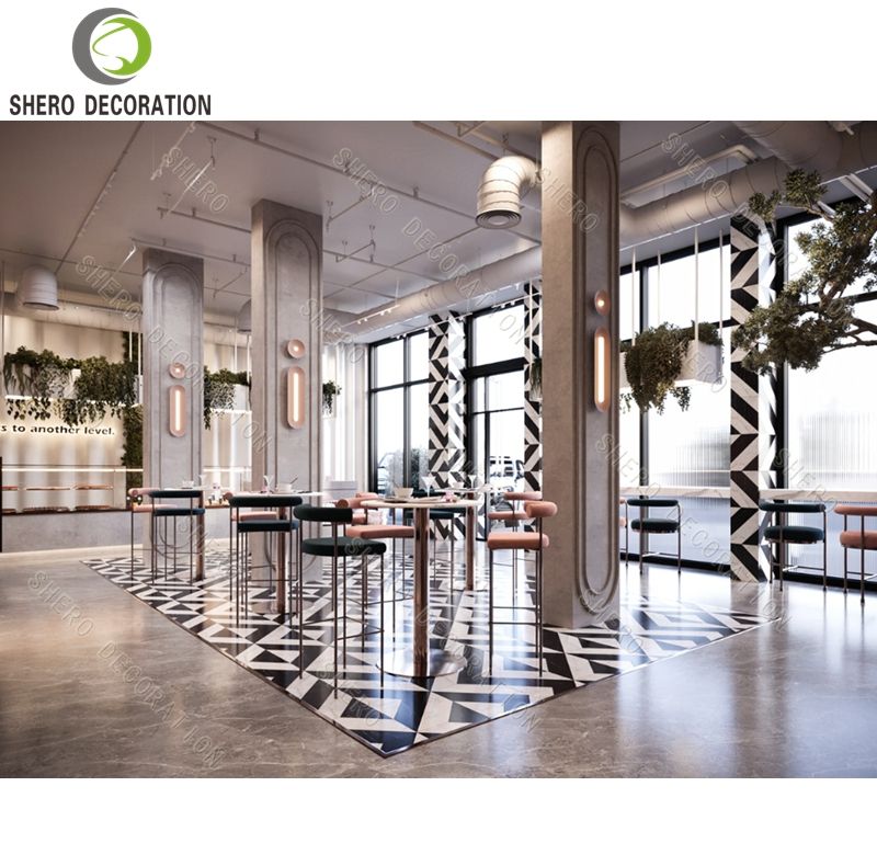 Aménagement intérieur de boulangerie haut de gamme, mobilier de boulangerie sur mesure, comptoir de bar en marbre de luxe pour la décoration de boulangerie.