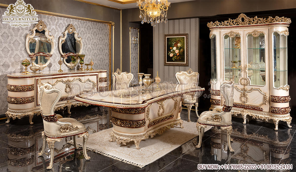 High End Baroque Black Dining Table Set