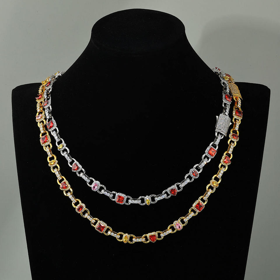 Collier chaîne haut de gamme sur mesure en moissanite multicolore, en argent 925, style Hip Hop Bling Iced Out, bijoux avec pierres VVS qui passent le testeur