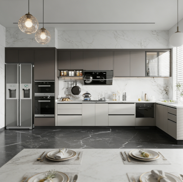 En bois, Écologique, Ignifuge, Cuisine Moderne, Armoire de cuisine modulaire