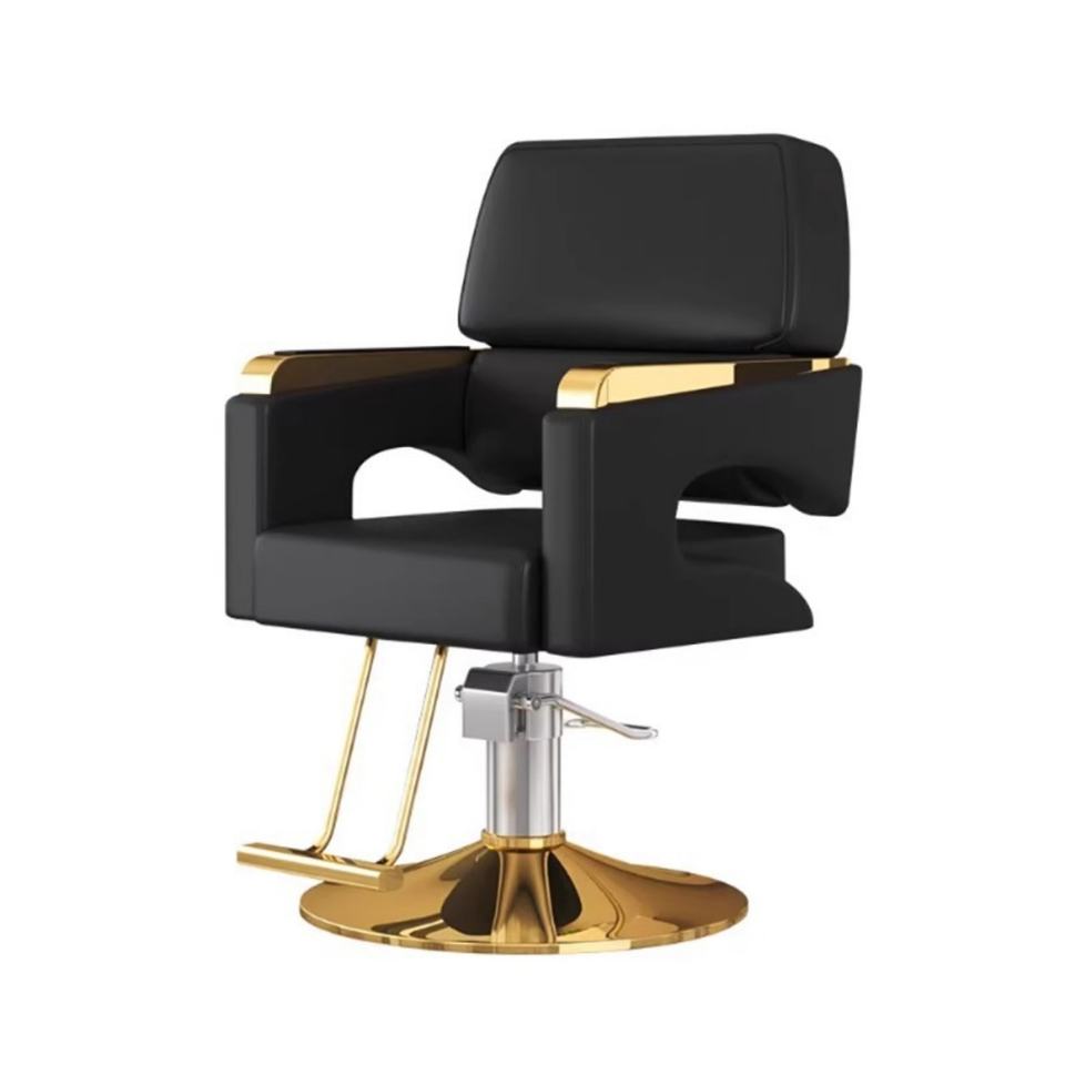Chaise de barbier en métal noir haut de gamme pour hommes, mobilier de salon en PU et fer, accoudoir pivotant et relevable pour salons de beauté et salons de coiffure