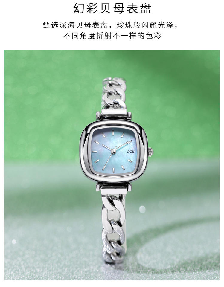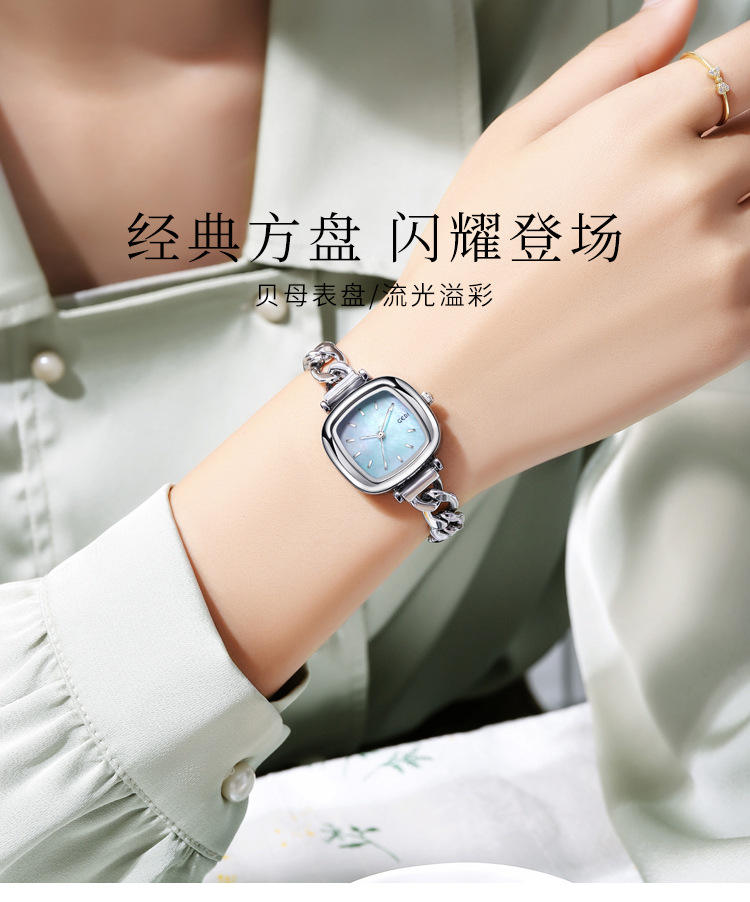Montre à quartz ovale pour femme, rose poudré haut de gamme, luxe de niche, nacre, fabrication sur mesure