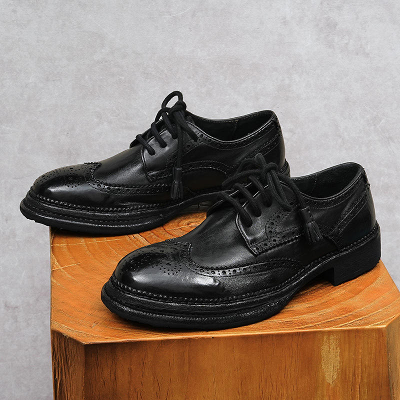 Chaussures décontractées pour hommes de style rétro britannique haut de gamme à bout pointu et franges, fabriquées à la main en cuir véritable